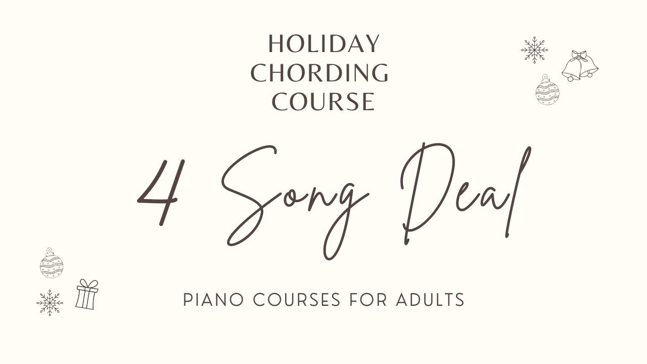 🎹 Use our Holiday Chording Course to easily learn to play 2, 4, 6, or 8 Christmas favorites at the piano that everyone can sing along to!